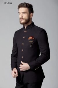 Wine Micro Suiting Hand Embroidered Tuxedo Set