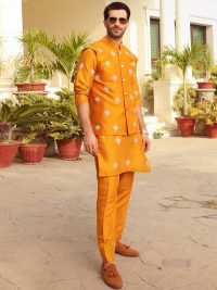 Yellow color embroidered waist coat