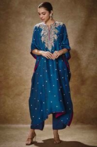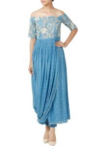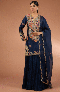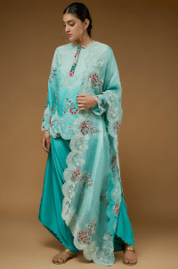Blue Chiffon Zari Embroidered Jacket Kurta Set