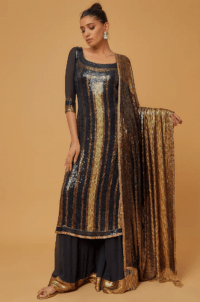Black satin crepe sequin embellished handkerchief kurta & dhoti skirt