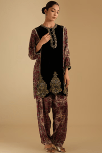 Black Silk Velvet Hand & Machine Embroidered Short Kurta Set