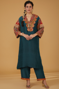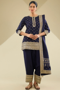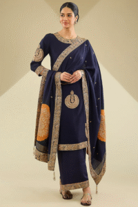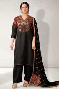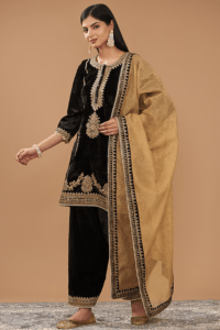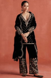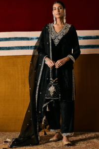 Black Silk Velvet Kiran Dori Embroidered Kurta Set