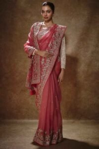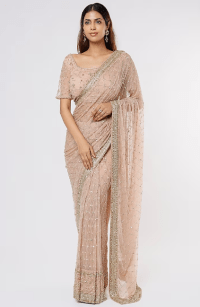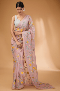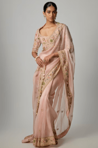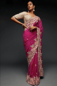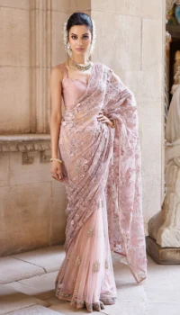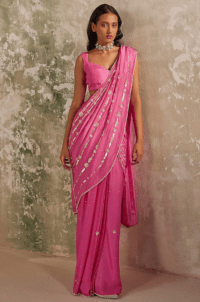 Pink saree with embroidered blouse