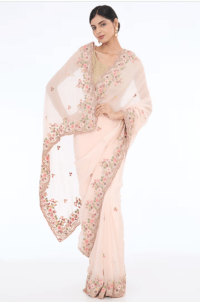 Pink Organza Zardosi Embroidered Ombre Saree Set