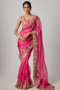 Pink Organza Saree Set