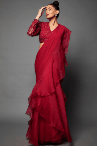 Red Chiffon Pre-Stitched Ruffled Saree Set