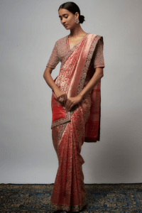 Red & Pink Silk Bandhani Saree Set