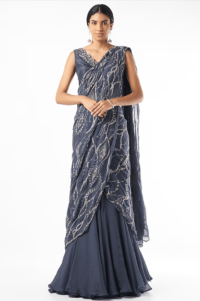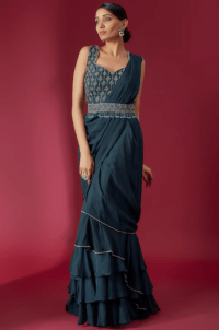 Teal Sequins Sculpted Gown Saree