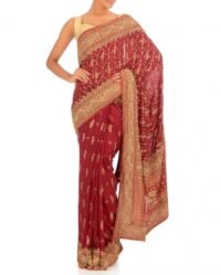 Vermillion Red Buti Embroidered Sari