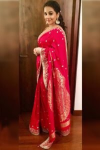 Vidya Balaan In A Red Embroidered Saree