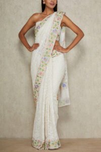 White chikankari sari