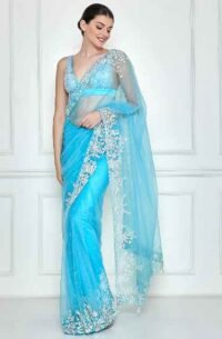Vista blue color party wear sari