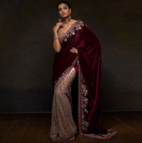 Wine Color Velvet Sari