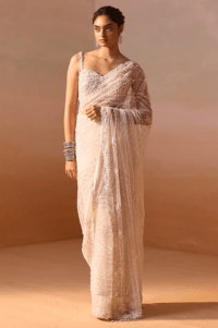 White Tulle Cutdana Bead Embellished Saree Set