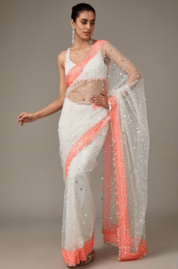White Net Sequins Embellished Saree Set