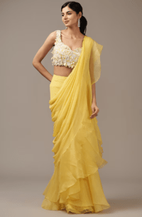 Yellow Chiffon Organza Draped Ruffled Saree Set