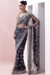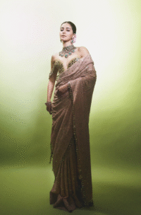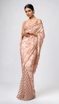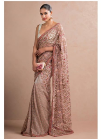 Ananya Panday dust pink hand embroidered sequence sari set.