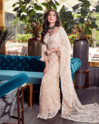 Adriatic Mist Masterpiece Chikankari & Kamdani Saree ( With 2 Blouses)