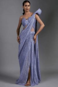 Amethyst Sequins Bugle Beads Embroidered Sculpted Gown Saree