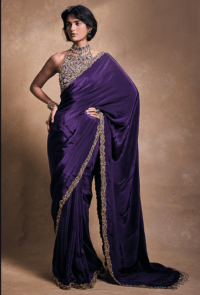 Deep Mauve Gold Embroidered Saree with Sleeveless Blouse