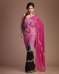 Double Color Pink And Maroon Sari