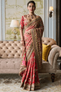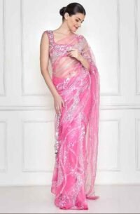 Deep Pink Embroidered Saree Set