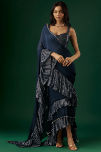 Deep Navy Blue Shimmer Georgette Sequin Ruffled Saree Set