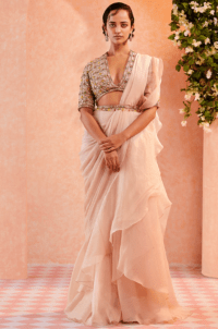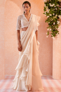 Dirty Ivory Ruffled Draped Saree Set