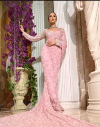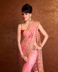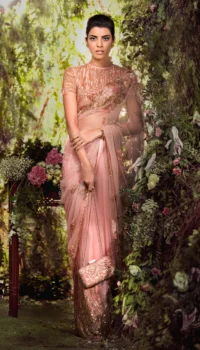 Embroidered Pink Tulle Sari with Sequined Blouse
