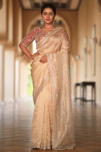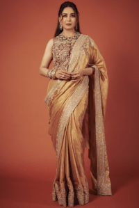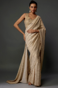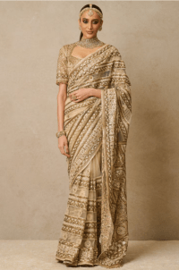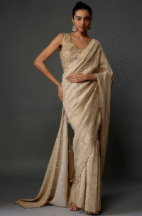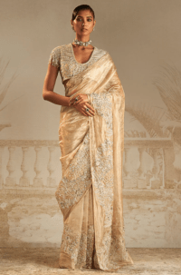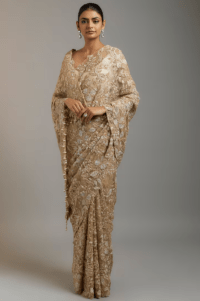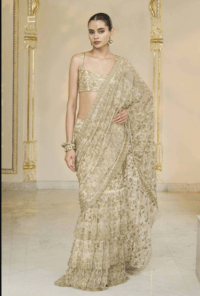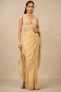 Gold-Beige Hand Embroidred Ruffle Concept Sari Set