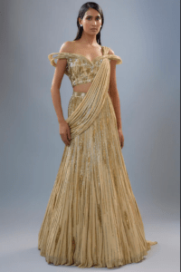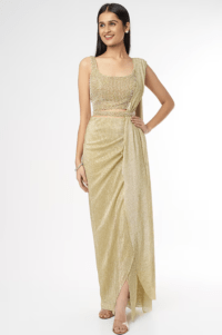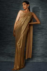 Gold Shimmer Lurex & Satin Hand Embroidered Gown Saree