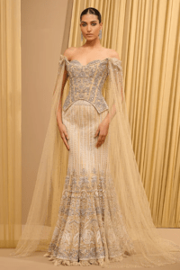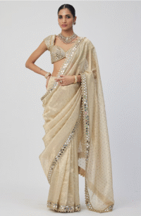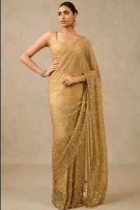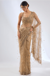 Gold Tulle Sequins Hand Embroidered Concept Structured Saree Set