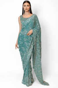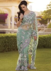 Green Color Embroidered Sari