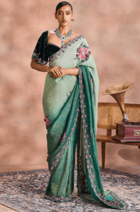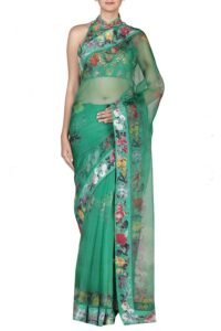 Green floral pattern saree