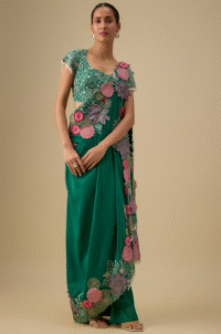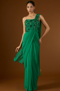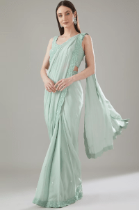 Green Embellished Pre-Stitched Saree Set