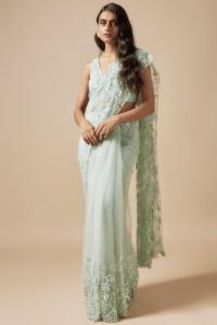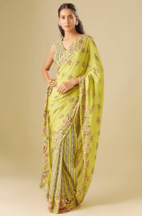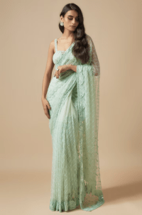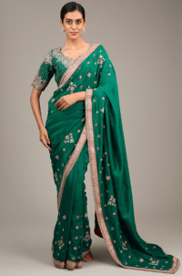 Green saree with embroidered blouse