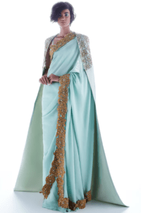 Green Sari With Gold Appliqu