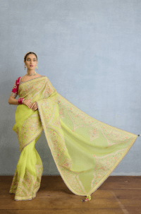 Green Organza Thread Embroidered Saree Set