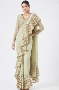 Green Georgette Ruffled Saree Set