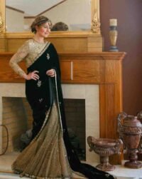 Beige Black Color Embroidered Lehenga Saree