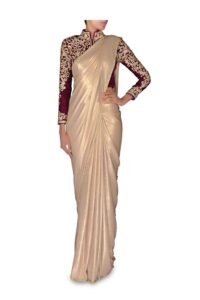Beige And Wine Color Embroidered Sari