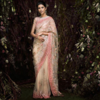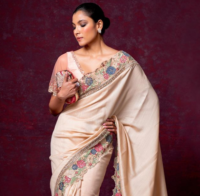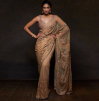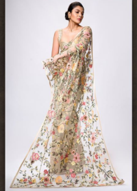 Beige color floral embroidered sari