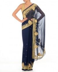 Navy Blue Georgette Embroidered Saree Set