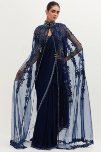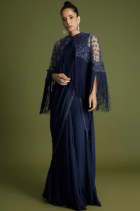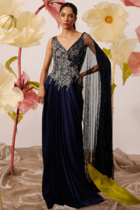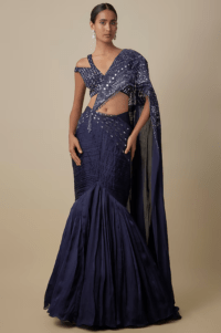 Navy Blue Hand Embellished Draped Saree