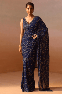 Navy Blue Georgette Sequins & Beadwork Saree Set