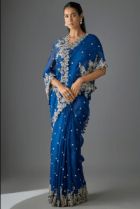 Navy Blue Silk Cutwork Embroidered Saree Set