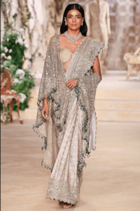 Beige Tulle Cutdana & Resham Embroidered Saree Set