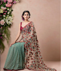 Pearl White Color Embroidery Saree