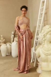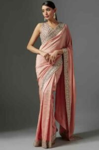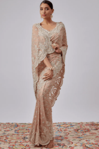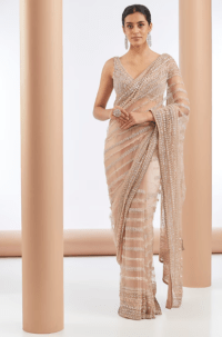 Peach saree with embellished blouse