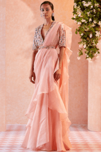Peach Ruffled Draped Saree Set
